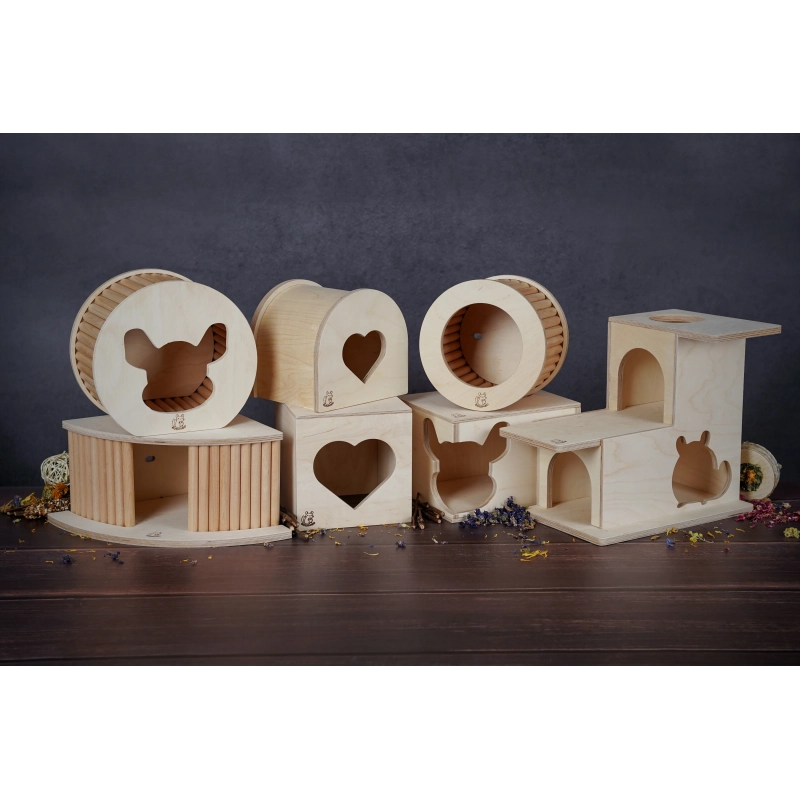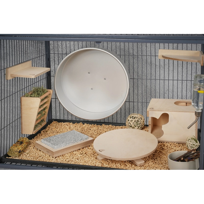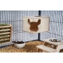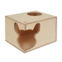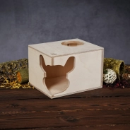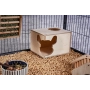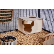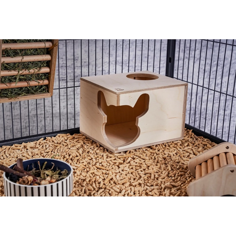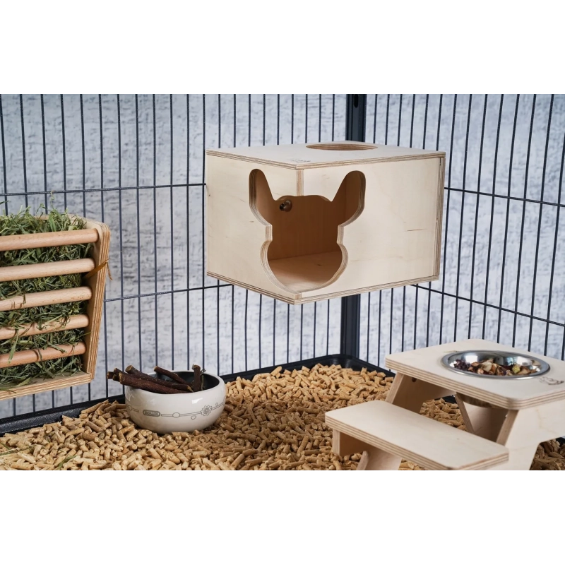 Zaprojektowany z dbałością o potrzeby gryzoni, ten prostokątny domek oferuje szynszylom i koszatniczkom idealne schronienie. Domek ma dwie opcje wejścia: charakterystyczne, narożne wejście w kształcie głowy szynszyli oraz funkcjonalne, okrągłe wejście od góry