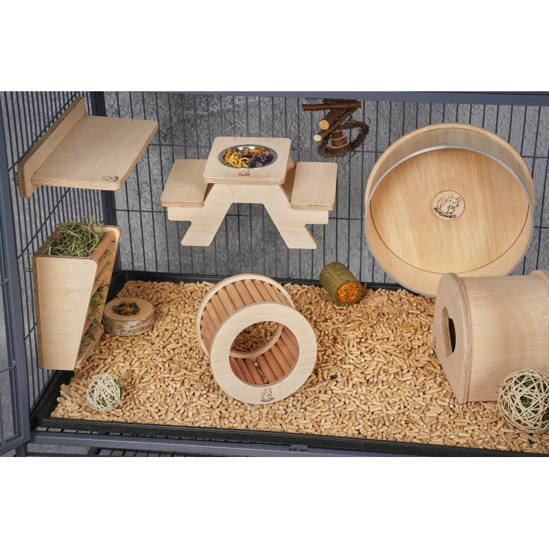 Wielofunkcyjny – może służyć również jako schodek lub półka, idealny do wspinaczki dla szynszyli i innych aktywnych gryzoni