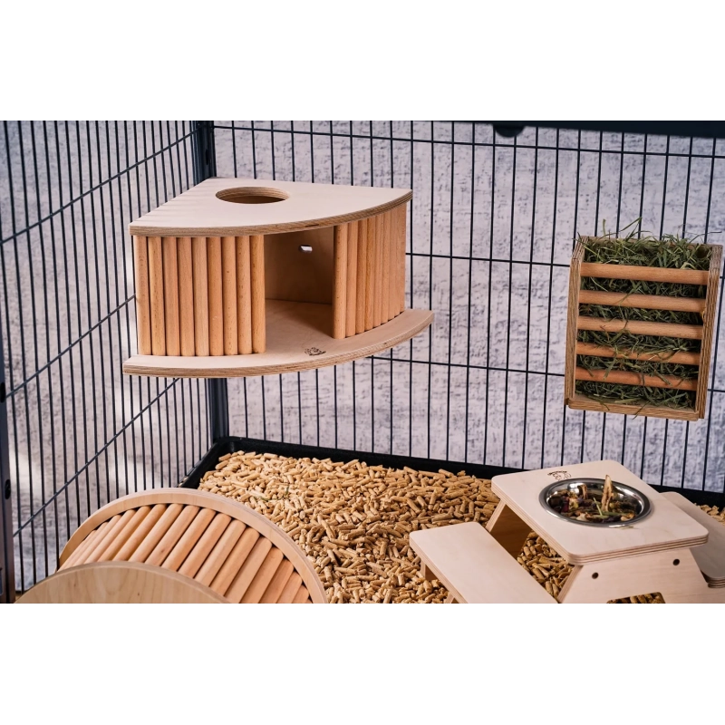 Prosty i Funkcjonalny Design: Prostota naszego paśnika to nie tylko kwestia estetyki - to także funkcjonalność. Ułatwia to czyszczenie, napełnianie siankiem i dostosowanie do każdej klatki.