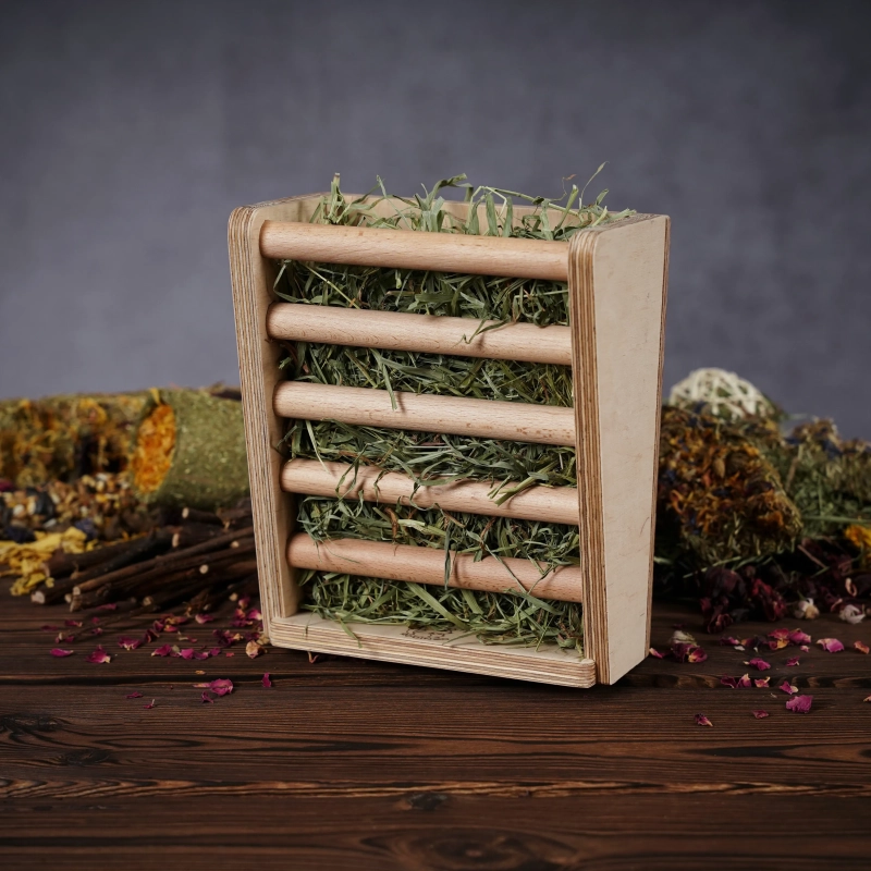 Zdrowie i Komfort: Regularne spożywanie sianka jest kluczowe dla zdrowia gryzoni. Nasz paśnik zapewnia łatwy dostęp do świeżego sianka, wspomagając zdrowie Twojego pupila.