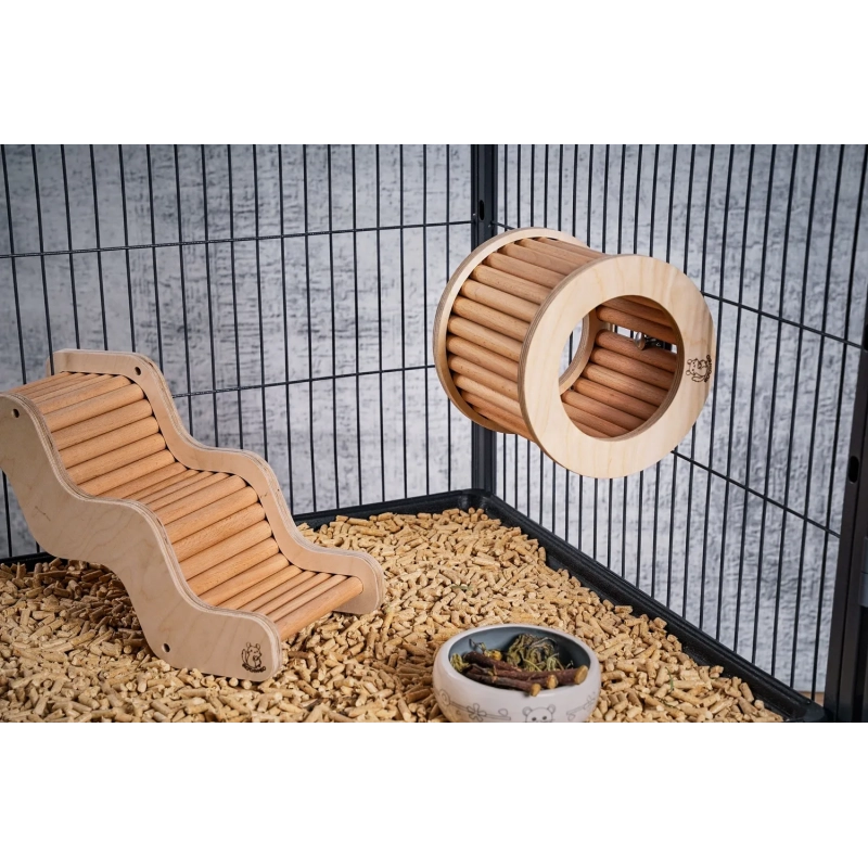 Poznaj nasz drewniany tunel, stworzony z myślą o zapewnieniu radości i aktywności Twoim futrzanym przyjaciołom. Ten tunel nie tylko wzbogaca środowisko klatki, ale także stymuluje naturalne zachowania szynszyli i koszatniczek.